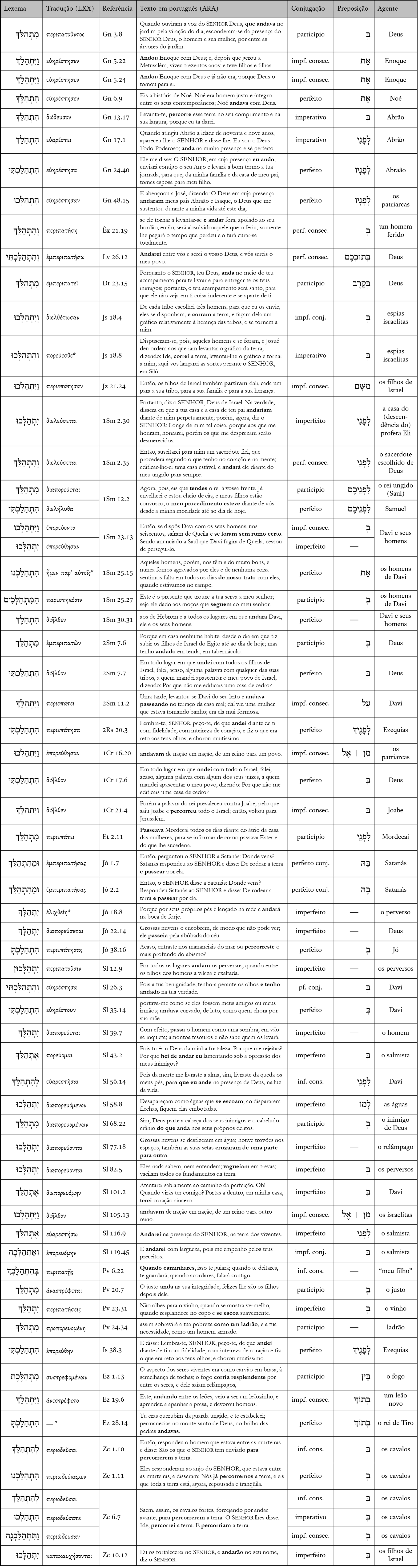 Deparei-me com uma forma um tanto diferente do verbo comum הלך num estudo que fazia em Levítico 26.11-12: “Porei o meu tabernáculo no meio de vós, e a minha alma não vos aborrecerá. Andarei entre vós e serei o vosso Deus, e vós sereis o meu povo.” (ARA)